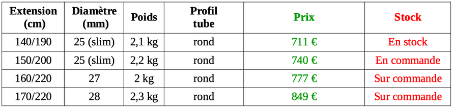 Possibilité de choix d'un modèle ultra slim de diamètre 25 sur toute la longueur du tube!